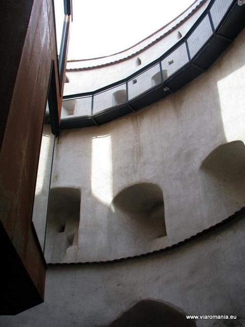 Acest bastion este de fapt un turn de aparare, deci este un cilindru gol pe dinauntru, din care locuitorii vechii cetati lansau ghiulele cu tunurile sau turnau zmoala si apa fiarta in capul cotropitorilor. Cei de la Consiliul Judetean Brasov s-au gandit ca e pacat ca locul asta sa ramana doar un turn gol, asa ca pe dinauntrul bastionului au ridicat o constructie metalica, un fel de schela cu geamuri, pe mai multe nivele, la fiecare nivel existand instalate ecrane “touch-screen” frumos camuflate sub forma unor sevalete din lemn.
