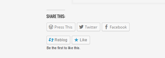 În mod implicit, odată ce ai înregistrat un blog la WordPress.com și ai publicat primele articole, vei vedea următoarele butoane de „sharing”: